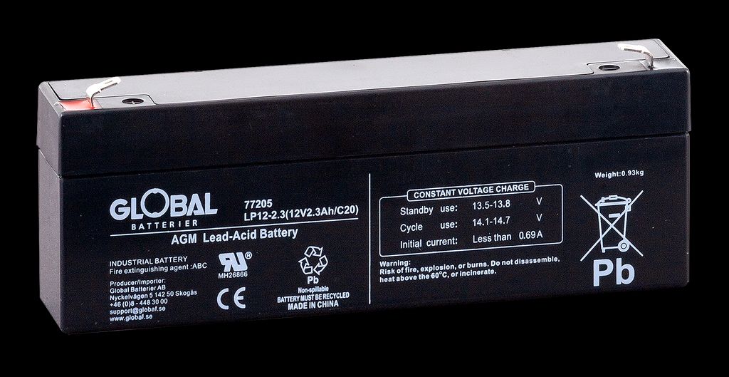 Global 12V 2.2Ah (AGM) batteri 178x35x60