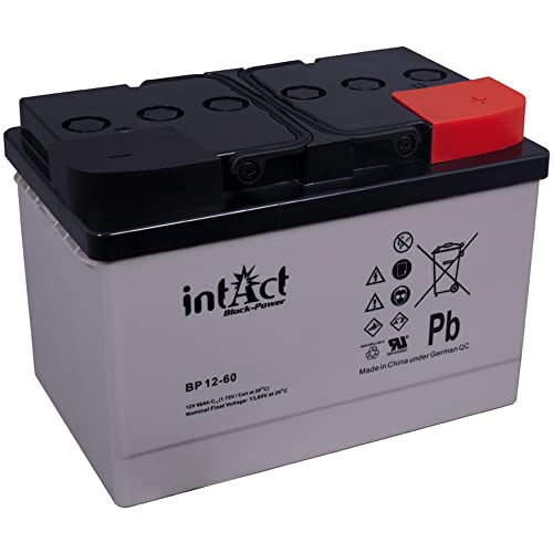 intAct Block-Power BP12-60, 12 V 60 Ah, högkvalitativt och tillförlitligt försörjningsbatteri, underhållsfritt AGM-batteri