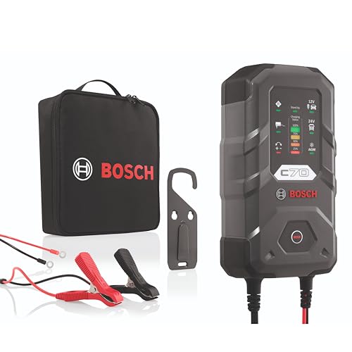 Bosch C70 batteriladdare, 10 ampere med underhållsfunktion – för 12V/24V blybatterier, AGM-, GEL-, EFB- och SLI-batterier