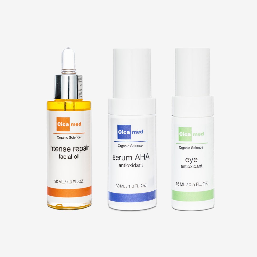 Cicamed Intense Repair & Antioxidant Hudvårdspaket - Ögonkräm, Ansiktsolja & AHA-Serum - 15ml, 30ml