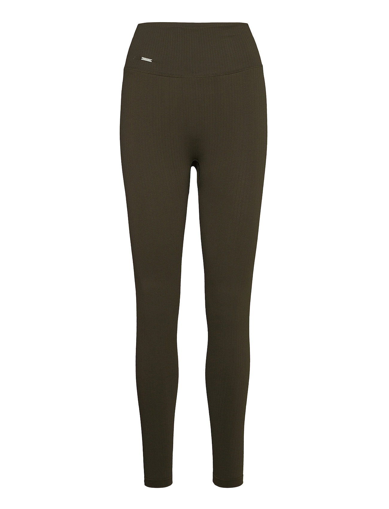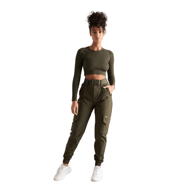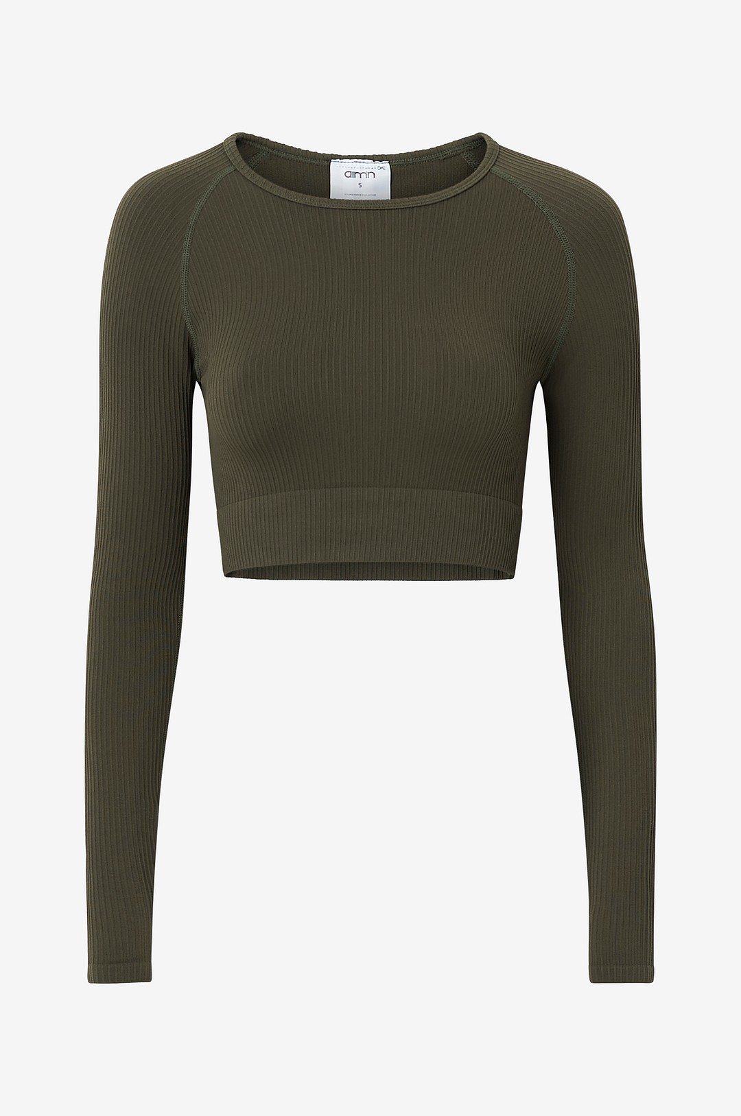 Aim'n - Topp Khaki Ribbed Seamless Crop Long Sleeve - Grön