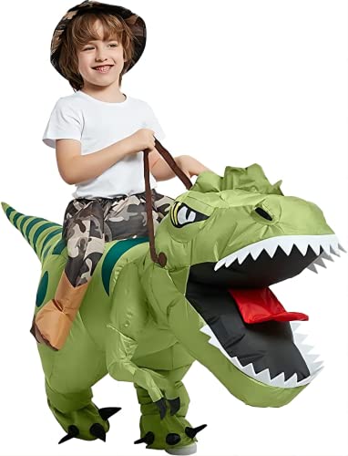 FXICH Uppblåsbara dinosaurierkostym, rida T Rex Air Blow up, rolig fin klänning, fest, halloweenkostym för vuxna 【Höjd passar för 3,3–4,1 fot/39,4–49,2 tum】