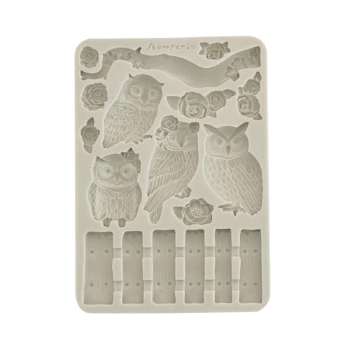 Stamperia - Silicon Mould A5 for Scrapbooking, Bullet Journals and More, Non-Stick Surface, Suitable for Air-Dry Clay, Resin and More, Perfect for Crafts and Gifting (The Owl’s House, Owls and Branch)