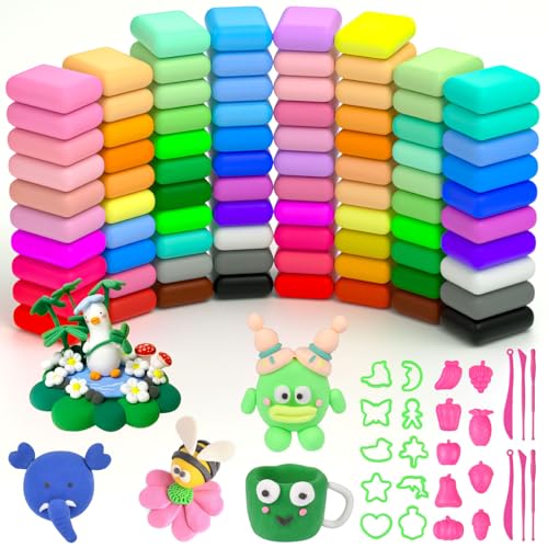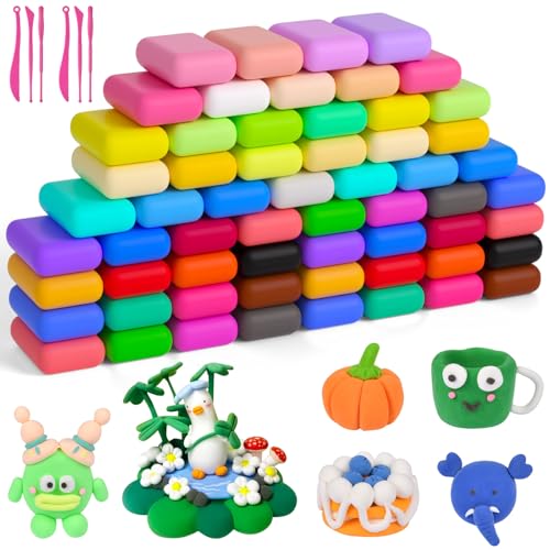 AUAUY Air Dry Clay, 60 bitar Ultra Light Modeling Clay med 6 skulpteringsverktyg, självhärdande Magic Play Dough Clay, giftfri, bästa presenterna för barn