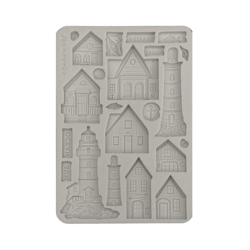 Stamperia - Silicon Mould A5 for Scrapbooking, Bullet Journals and More, Non-Stick, Suitable for Air-Dry Clay, Resin and More, Perfect for Crafts and Gifting (Silent Sea, Houses and Lighthouse)