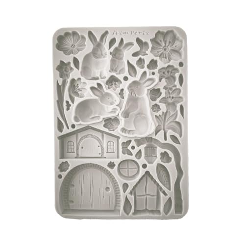 Stamperia - Silicon Mould A5 for Scrapbooking, Bullet Journals and More, Non-Stick, Suitable for Air-Dry Clay, Resin and More, Perfect for Crafts and Gifting (Favourites Refresh, Rabbit and Flowers)
