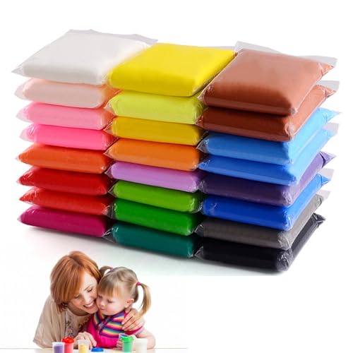 24 färger lufttorkande lera – Supermjuk modellera & magic clay för barn från 3 år – Giftfri DIY pyssellera i zip-påse med verktyg & formar – Kreativ air dry clay set