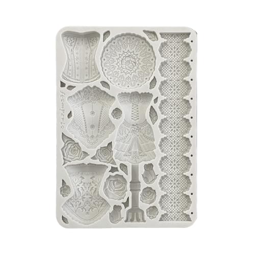 Stamperia – Silicon Mould A5 för scrapbooks, bullet journals and More, non-stick, lämplig för Air-Dry Clay, harts and More, perfekt för hantverk och gåva (Gammal Lace, skyltdocka och korsets)