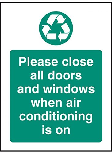 Caledonia skyltar 16628A"Please Close All Door and Windows When Air condition is on" skylt, styv plast, 100 mm x 75 mm