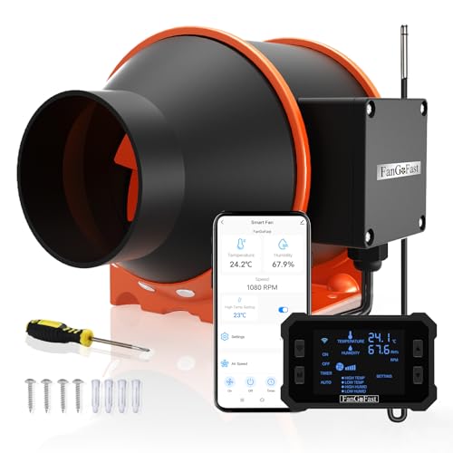 FanGoFast 100 mmWifi App Air Extractor, med temperatur- och fuktighetskontroll, EC-motor, 2 800 varv/min frånluftsfläkt för superladdare, tält