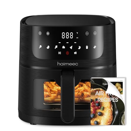 HAIMEEC Air Fryer Oven 6,3 Qt Airfryer, 8 smarta förinställningar för rostar, bakes, broils, vy fönster och pekskärm, snabb & oljefria hälsomålningar, SHAKE påminnelse, recipes, air fry fit för 4-8
