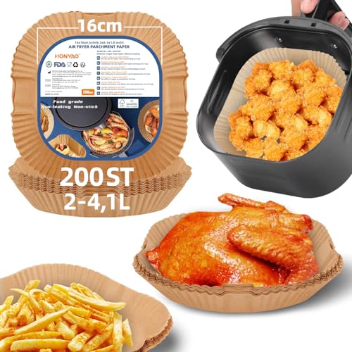 HONYAO Airfryer Bakplåtspapper 16x16cm 200 stycken Fyrkant non-stick-engångsbruk Papper Liner för Luftsfritös 2-4,1 L, Pergamentpapper Bakpapper Tillbehör för Ninja,COSORI,Philips,Princess Airfryer