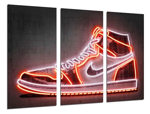Cuadros Cámara Set med 3 väggdekorationer, modern vardagsrumsdekoration, sovrum, rum, Nike Air Jordan-tofflor, (97 x 62 cm)