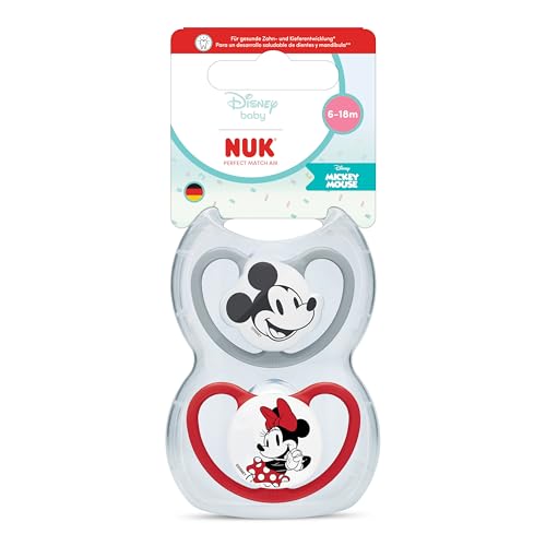 NUK Perfect Match Air napp för spädbarn | 0-6 månader | Ortodontiska nappar som främjar luftflöde och förhindrar dregelutslag | 95% acceptans hos barn** | Minnie Mouse | 2 stycken