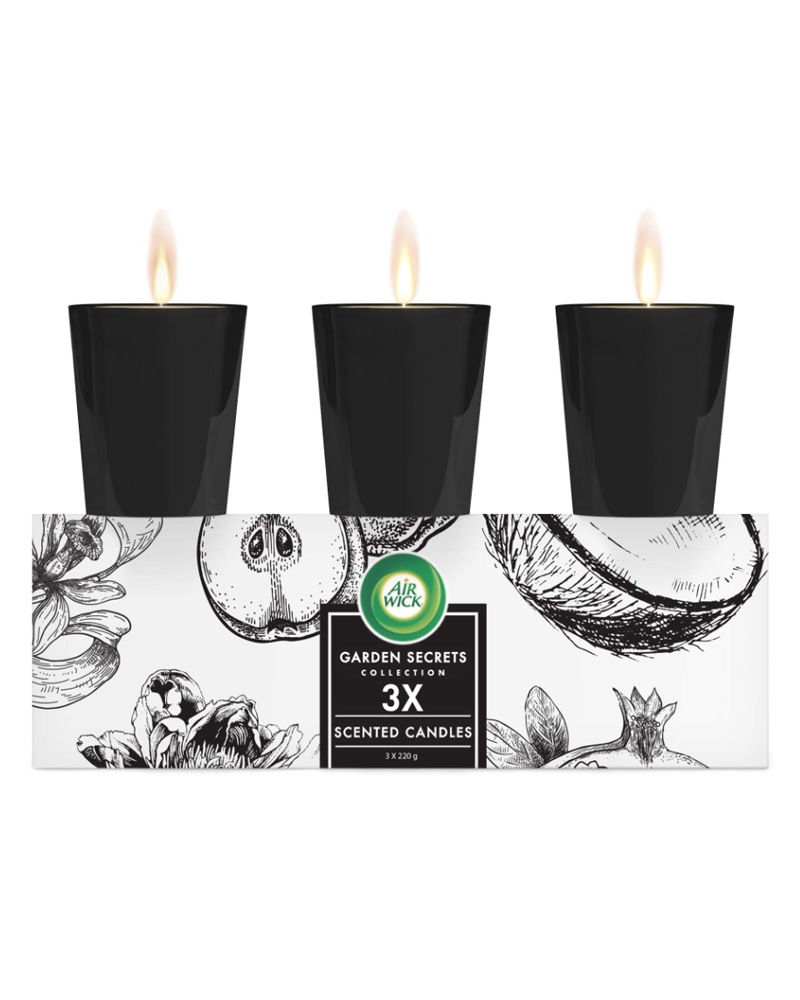 Air Wick Garden Secrets Scented Candles Gift Pack Mixed Fragrances 220 g 3 stk.
