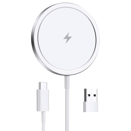 AXFEE Magnetisk trådlös laddare, 15 W snabbladdning trådlös laddare, laddningsdyna kompatibel med i-Phone 16 Pro Max/16 Pro/16 Plus/15/14/13/12-serien/AirPods 3/2, vit