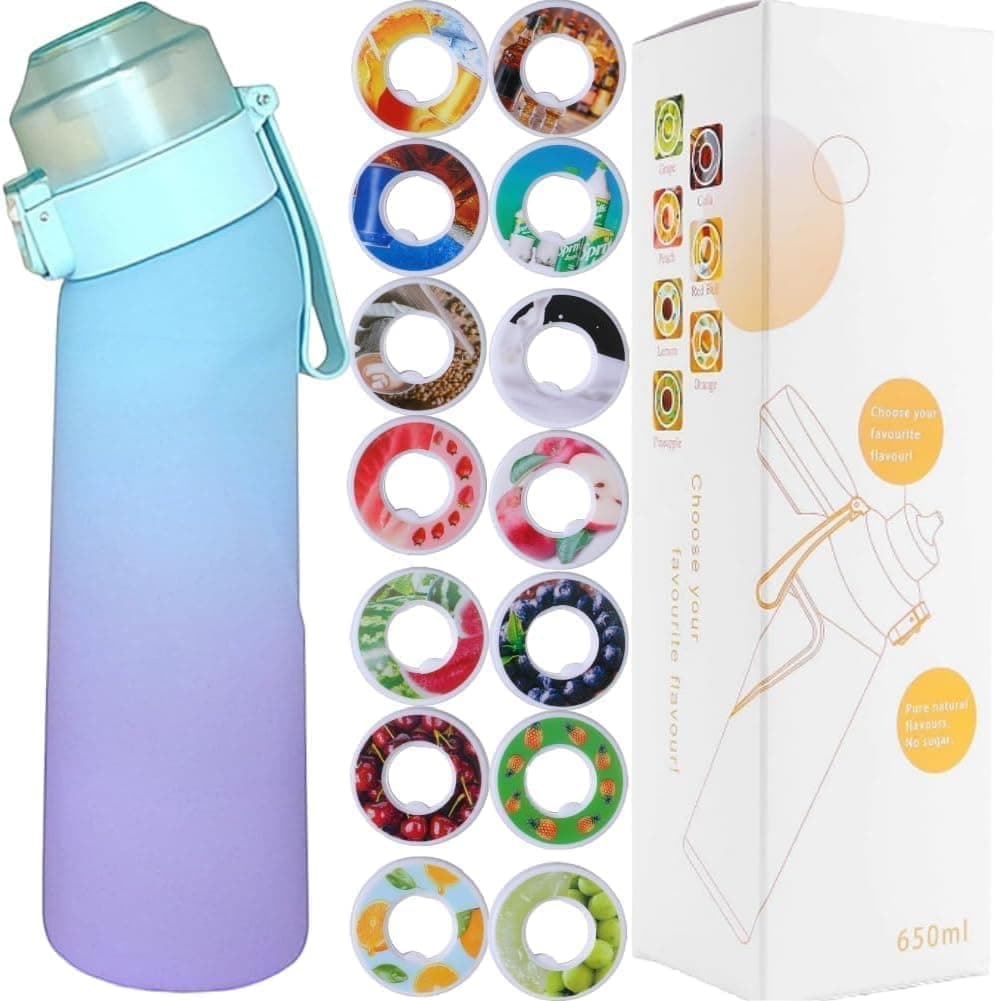 Air-Up Luftvattenflaska 650ml – 7 Smakkapslar | 0 Socker & Doftande | Gradient Blå + Suprör
