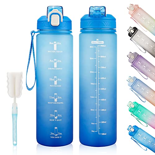YC Kitchen Vattenflaska med tidsmarkör, 1 l, med sugrör, ”air-up”-vattenflaska, läckagesäker och BPA-fri, sportvattenflaska med bärrem, för fitness, gym och utomhussport