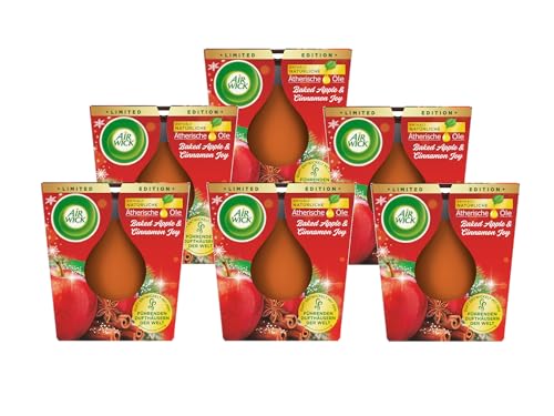Air Wick må-bra-doftljus i glas - doft: Baked Apple & Cinnamon Joy - Upp till 20 timmars brinntid - Innehåller naturliga eteriska oljor - 6 x 105 g doftljusset