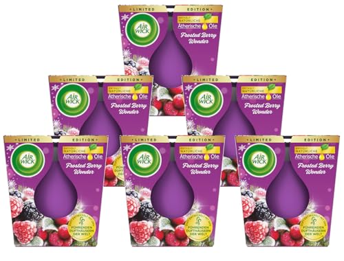 Air Wick må-bra-doftljus i glas - doft: Frosted Berry Wonder - upp till 20 timmars brinntid - Innehåller naturliga eteriska oljor - 6 x 105 g doftljusset, lila