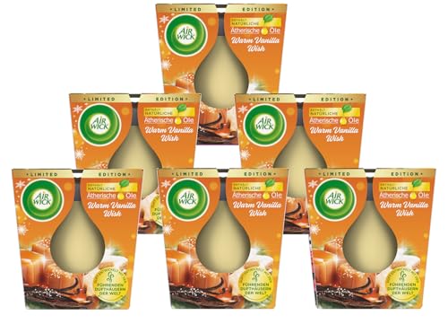 Air Wick må-bra-doftljus i glas - doft: Varm Vanilla Wish - Upp till 20 timmars brinntid - Innehåller naturliga eteriska oljor - 6 x 105 g doftljusset, gul
