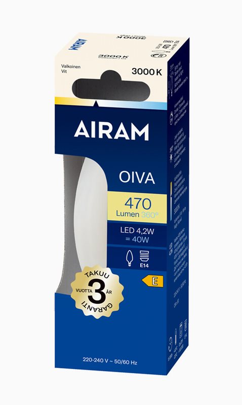AIRAM Oiva LED-lampa E14 Kronljus 2,2W/830 250lm Opal
