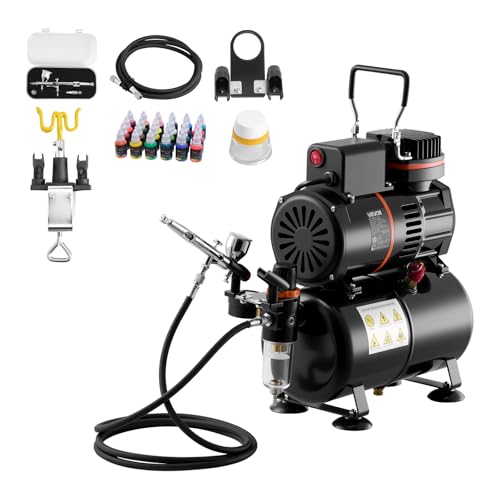 VEVOR Airbrush Kit med luftkompressor 1/6 HP dubbelverkande airbrush kompressor med munstycke, slang, 24 akrylfärger, tårtdekorationssats, modeller, naglar