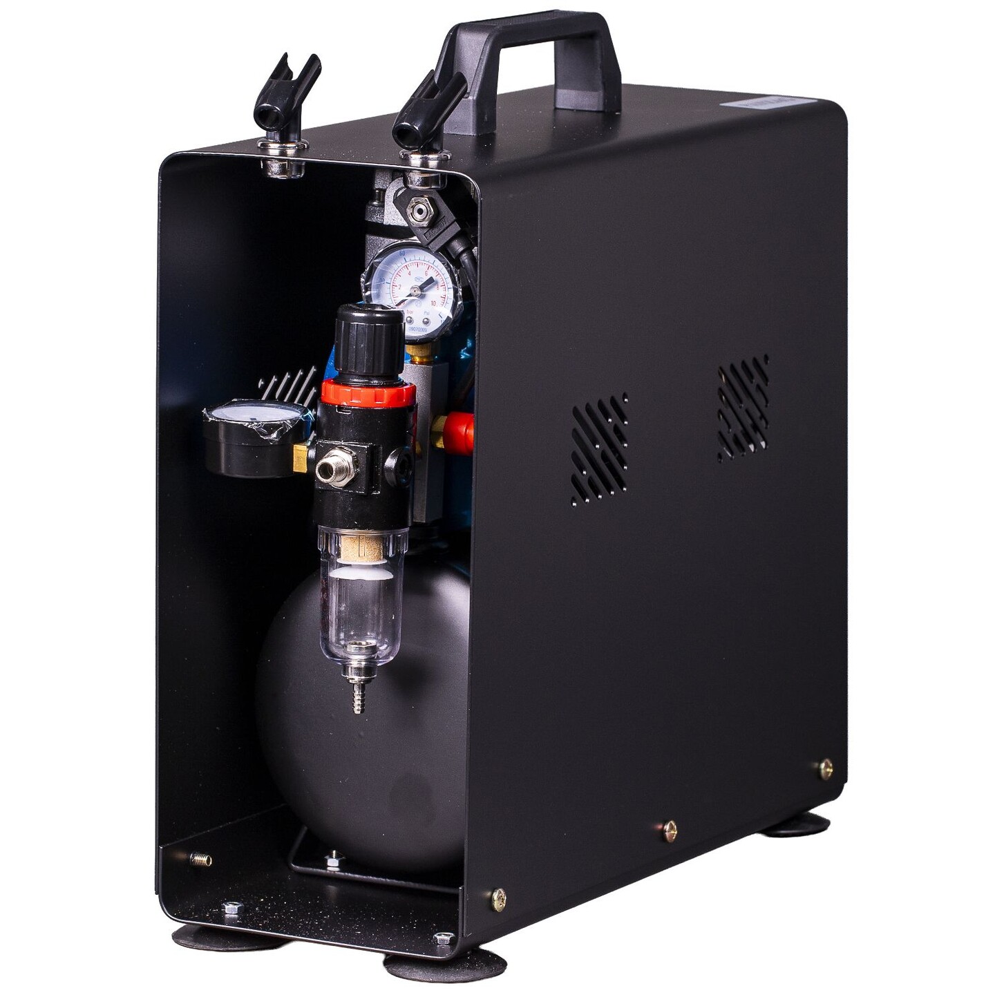 Airgoo Lyx Airbrush kompressor AG-320 med två kylfläktar, regulator, fuktfälla för hobby, livsmedelsdekoration, tatuering, grafik och så vidare