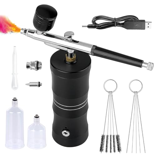 XIEANDKONG Airbrush set med luftkompressor, förbättrad 7,4 V 34PSI airbrush-pistol, uppladdningsbar, bärbar, trådlös, airbrush målning med 0,3 mm munstycke för makeup, tårtdekoration