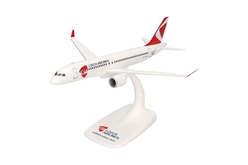 Herpa Snap-Fit flygplansmodell CSA Czech Airlines Airbus A220-300, miniatyr i skala 1:200, samlarobjekt, modell med ställ, plast