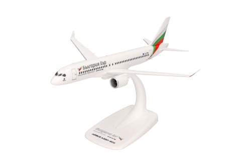 Herpa Snap-Fit flygplansmodell Bulgaria Air Airbus A220-300, miniatyr i skala 1:200, samlarobjekt, modell med ställ, plast