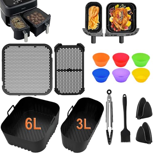 Airfryer i silikon för Philips Dual Basket Airfryer 3 000 Series 6 L/3 L, återanvändbar luftfritös Liner tillbehör för Philips 2 lådkorg 9 L Airfryer NA350/00