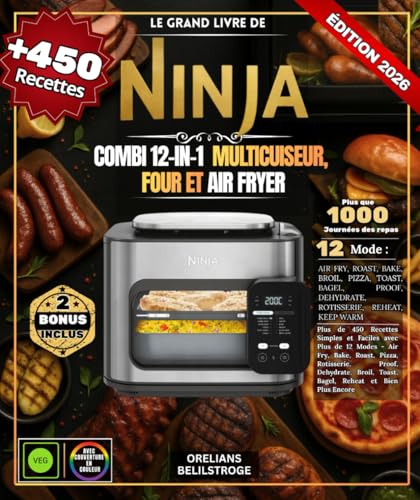 Le Le Grand Livre Ninja Combi 12-In-1 Multicuiseur, four et air fryer: Plus de 450 Recettes Simples et Faciles avec Plus de 12 Modes - Air Fry, Bake, ... Toast, Bagel, Reheat et Bien Plus Encore