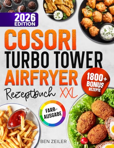 COSORI Turbo Tower Airfryer Rezeptbuch XXL: Schnelle und einfache Rezepte für Ihre COSORI Heißluftfritteuse. Mit vielen Bonis und Extrainhalten