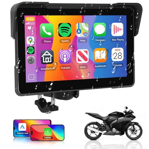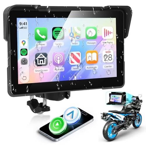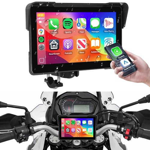Rimoody 7 tums Carplay skärm för motorcykel, trådlös Carplay och Android bildisplay för motorcyklar, bilradio för motorcyklar med Airplay/Android Cast/Dual Bluetooth/navigering/IP67 vattentät