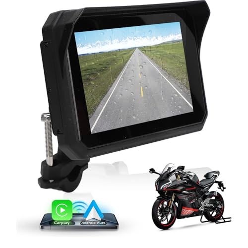Rimoody Trådlös Carplay Display Motorbike Android Auto, 5 tums pekskärm Carplay bärbar för motorcyklar, bilradio för motorcyklar med Airplay/Android Cast/Bluetooth/Navy/IP67 vattentät