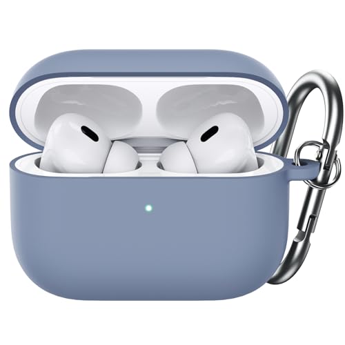 JETech Uppgraderat Silikon Fodral Omslag för AirPods Pro (2:a/1:a Generation 2023/2022/2019) med Nyckelring, Hård PC Interiör, Stötsäkert Skyddande Hudskal, LED Synlig Framtill (Alaskablått)
