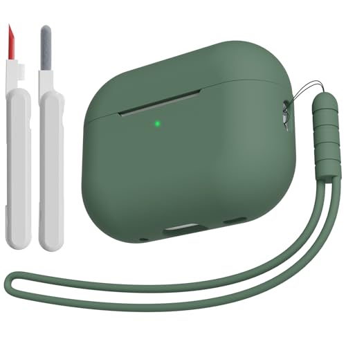 KOKOKA Fodral kompatibelt med AirPods Pro 2 (2023/2022/2019) med rengöringssats och snodd, mjukt silikon stötdämpande skyddande fodral för AirPods Pro 2:a/1:a generationen, djupgrön