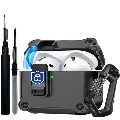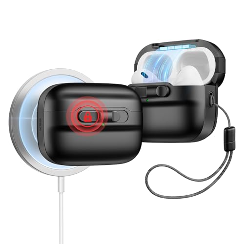 Aulumu A19 AirPods Pro Fodral [2/1 Generationen] med Lås • Heltäckande Skyddande Hård Fodral med Nyckelring • Kompatibel med Apple AirPods Pro (2022/2019) • För Män och Kvinnor, Cool Svart
