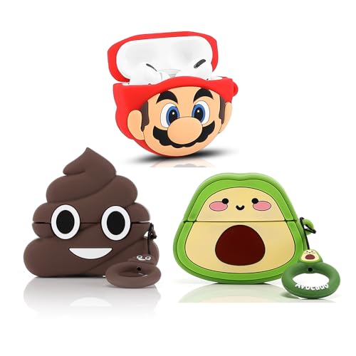(3-pack) fodral för AirPods Pro 2:a/1:a generationen (2022/2019) med nyckelring, XMBYGY silikon sött skyddande fodral med tecknad huddesign för pojkar och flickor (avokado+FUN+Mario)