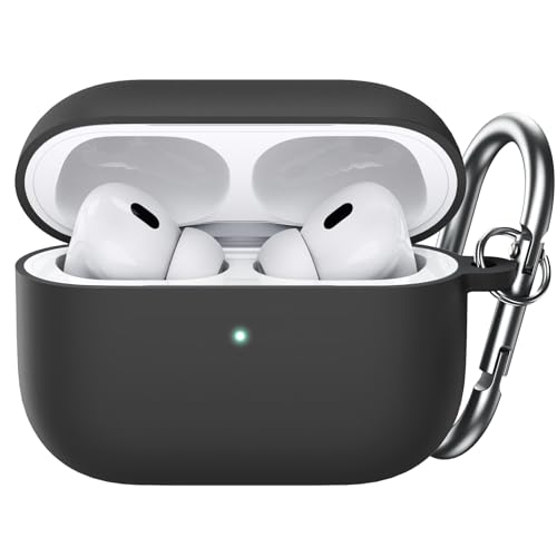 JETech Uppgraderat Silikon Fodral Omslag för AirPods Pro (2:a/1:a Generation 2023/2022/2019) med Nyckelring, Hård PC Interiör, Stötsäkert Skyddande Hudskal, LED Synlig Framtill (Svart)