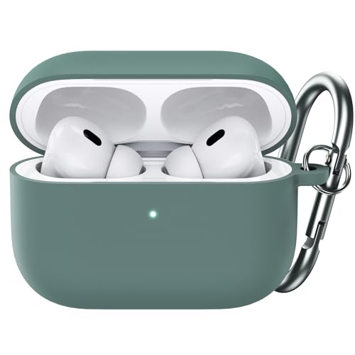 JETech Uppgraderat Silikon Fodral Omslag för AirPods Pro (2:a/1:a Generation 2023/2022/2019) med Nyckelring, Hård PC Interiör, Stötsäkert Skyddande Hudskal, LED Synlig Framtill (Pine Grön)