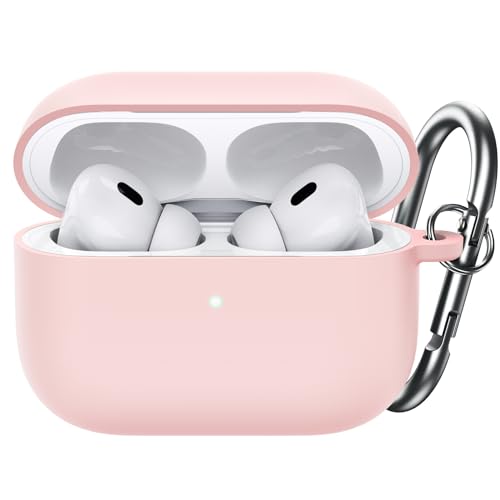 JETech Uppgraderat Silikon Fodral Omslag för AirPods Pro (2:a/1:a Generation 2023/2022/2019) med Nyckelring, Hård PC Interiör, Stötsäkert Skyddande Hudskal, LED Synlig Framtill (Ljusrosa)