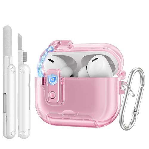 TiMOVO Case for AirPods Pro 3 (2025) with Secure Lock, Anti-Smudge, Soft TPU Transparent Cover for Apple AirPod Pro 3rd Generation with Phone Stand Function, Keychain & Cleaning Kit, Clear Pink