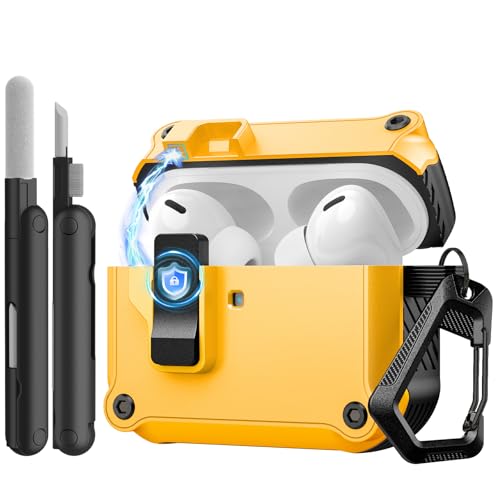 TiMOVO Case for Airpods Pro 3 (2025) with Secure Lock Clip, Automatic Pop-up Full Drop Protective Hard Cover for Apple AirPod Pro 3rd Generation with Climbing Hook & Cleaning Kit, Yellow+Black