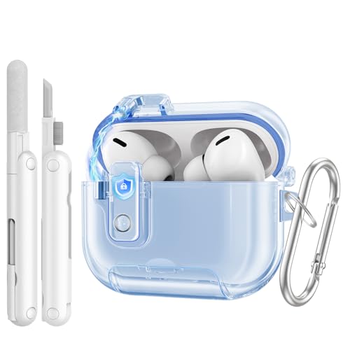 TiMOVO Case for AirPods Pro 3 (2025) with Secure Lock, Anti-Smudge, Soft TPU Transparent Cover for Apple AirPod Pro 3rd Generation with Phone Stand Function, Cleaning Kit & Keychain, Clear Blue