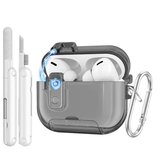 TiMOVO Case for AirPods Pro 3 (2025) with Secure Lock, Hard Shell, Shockproof, Music Headset Design Protective Cover for Apple AirPod Pro 3rd Generation with Cleaning Kit & Keychain, Black