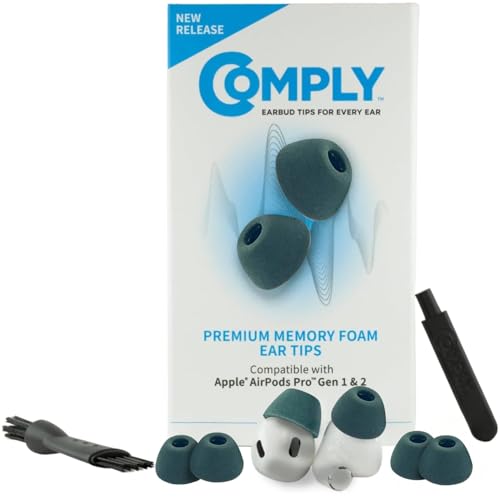 Comply Premium öronproppar i skum, kompatibel med Apple AirPods Pro Gen 1 & 2., storlek M, ny 2025-version med demonterings- och rengöringsverktyg, vit, 3 par, tillverkad i USA