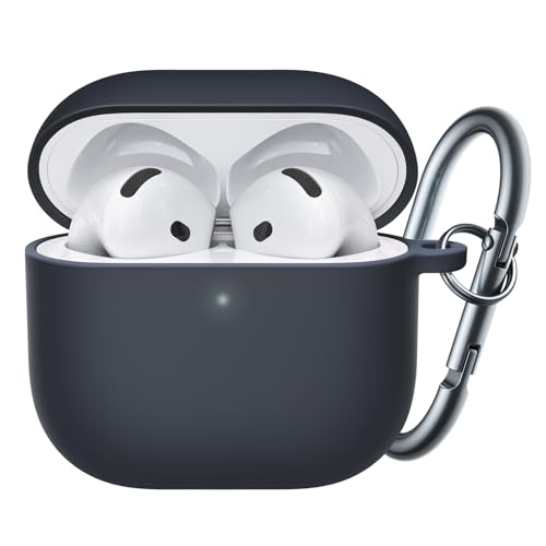 JETech Uppgraderat Silikon Fodral Case för AirPods 4:e Generationen (2024) med Nyckelring, Hård PC Interiör, Stötsäkert Skyddande Hudskal, LED Synlig Framtill (Svart)