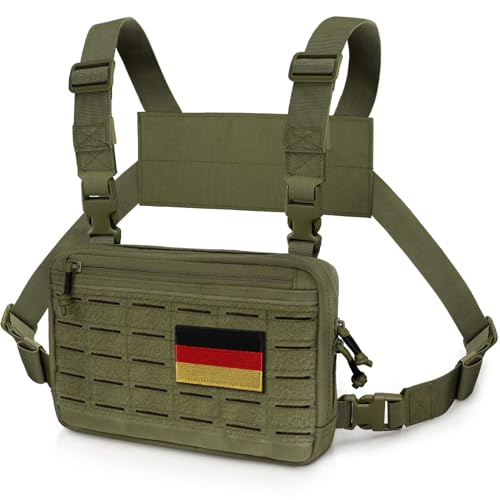 WYNEX Taktisk bröstficka av Laser Cut Design, Molle-bröstficka Utility Recon Kit väska taktisk kamp bröstförpackning airsoft framsida bröstkorg väska med patch, Armégrön, Extra ficka
